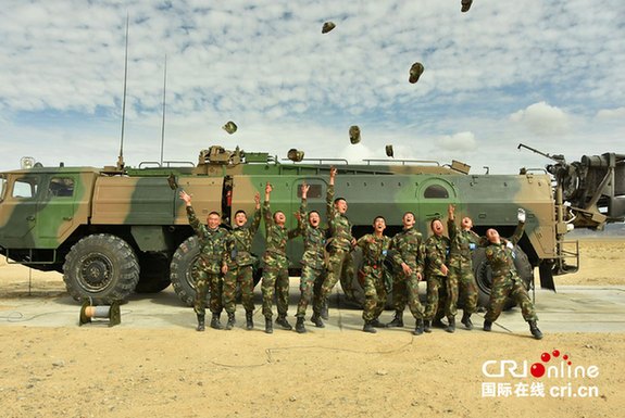 導(dǎo)彈發(fā)射成功官兵興高采烈 王杰攝
