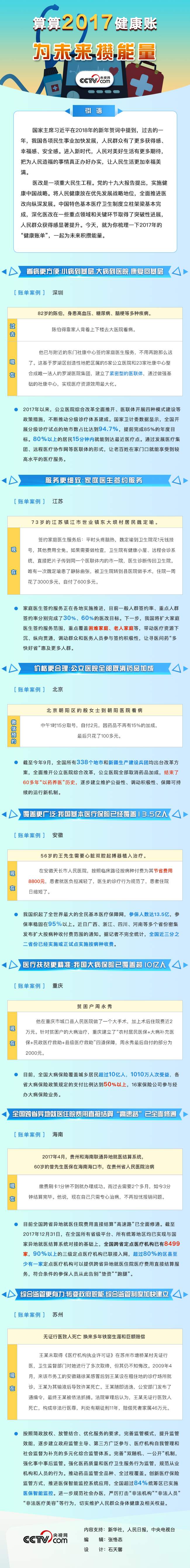 醫(yī)改是一項重大民生工程。黨的十九大報告提出,實施健康中國戰(zhàn)略。將人民健康放在優(yōu)先發(fā)展戰(zhàn)略地位,全面推進醫(yī)改向縱深發(fā)展。中國特色基本醫(yī)療衛(wèi)生制度立柱架梁基本完成,深化醫(yī)改在一些重點領(lǐng)域和關(guān)鍵環(huán)節(jié)取得了突破性進展,人民群眾獲得感顯著提升。今天,就為你梳理一下2017年的“健康賬單”,一起為未來積攢能量。