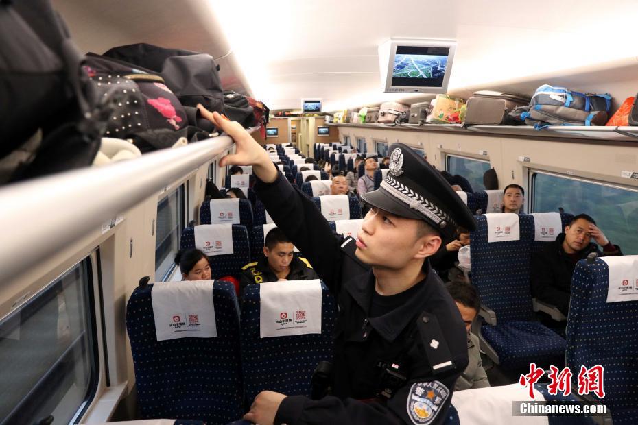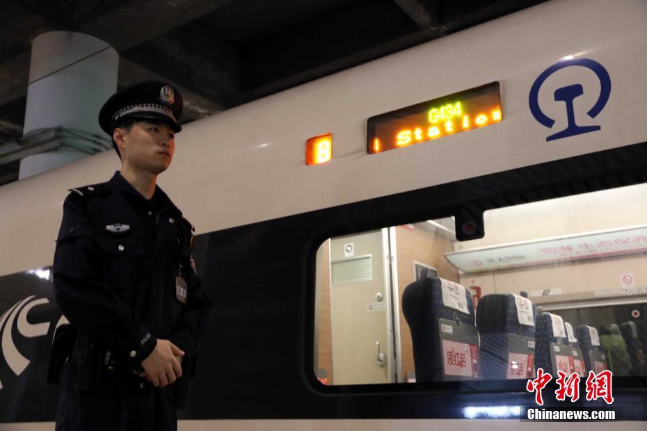 孔令揚(yáng)是南寧鐵路公安處乘警支隊(duì)一名普通的乘警,今年28歲,家在山東濟(jì)南,父親曾是一名鐵路警察。平時(shí),這名年輕的“90”后鐵警,不停地來往于南寧和濟(jì)南之間,與妻子和父母過著聚少離多的“雙城”生活,每月只有6個(gè)晚上在家。今年大年三十和初一正好是他值班,大年三十晚上20時(shí)40分,孔令揚(yáng)值乘的G434次高鐵列車才到達(dá)濟(jì)南西站,孔令揚(yáng)趕緊趕回家與父母團(tuán)聚。2月16日(年初一)早上6時(shí),他即從家里出發(fā),趕到濟(jì)南西站,值乘上午8時(shí)15分由濟(jì)南西開往南寧東的G433次列車?琢顡P(yáng)只能和父母相聚不到8個(gè)小時(shí),沒來得及和妻子一起去岳母娘家省親?琢顡P(yáng)只是南寧鐵路公安處大年夜值乘民警中的一員,今年大年夜和年初一,南寧鐵路公安處共有40多名民警堅(jiān)守在崗位上。胡宏 攝 -