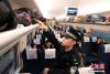 孔令揚(yáng)在車廂內(nèi)檢查旅客的身份證件。胡宏 攝 -