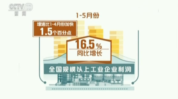 1到5月份,全國規(guī)模以上工業(yè)企業(yè)利潤同比增長16.5%,增速比1到4月份加快1.5個百分點;其中,5月份增長21.1%,延續(xù)了快速增長的勢頭。