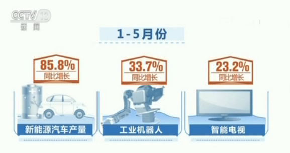 實體經(jīng)濟(jì)發(fā)展向好的同時,工業(yè)結(jié)構(gòu)不斷優(yōu)化,向中高端邁進(jìn)勢頭明顯。1到5月份,高技術(shù)制造業(yè)中,醫(yī)藥制造業(yè)、電子及通信設(shè)備制造業(yè)、醫(yī)療儀器設(shè)備及儀器儀表制造業(yè)增加值同比增速分別比規(guī)模以上工業(yè)快4.1、8.2和3.2個百分點。低碳化、智能化、網(wǎng)絡(luò)化、信息化快速發(fā)展,新產(chǎn)品大量增加。1到5月份,新能源汽車產(chǎn)量同比增長85.8%,工業(yè)機(jī)器人增長33.7%,智能電視增長23.2%,3D打印設(shè)備、石墨烯等產(chǎn)品快速增長。