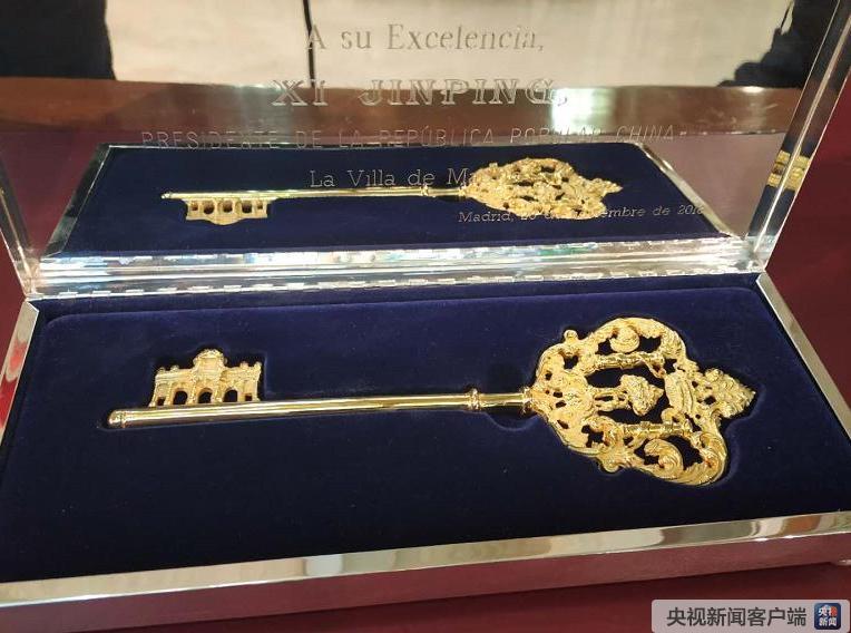 習(xí)近平在致辭中指出,很高興造訪馬德里并獲贈馬德里城市金鑰匙。這不僅是給予我個人的榮譽(yù),更承載著西班牙人民對中國人民的友好情誼。希望這把鑰匙能進(jìn)一步打開中西交往、人民友好的大門。