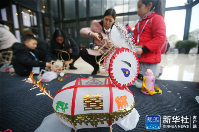 ↑2月10日,在江蘇南通中華慈善博物館舉行的“親子做花燈 快樂(lè)迎元宵”活動(dòng)現(xiàn)場(chǎng),家長(zhǎng)帶著孩子一起制作花燈。 (徐培欽 攝)