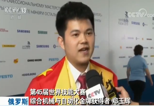 第45屆世界技能大賽綜合機械與自動化金牌獲得者 鄭玉輝:我完成了這么多年心中的夢想,因為從2013年開始到現(xiàn)在,已經(jīng)奔波了6年了。我身后有一個很強大的團隊,支持著我前進。