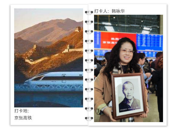 “我叫韓詠華,我爺爺韓魁元是修筑京張鐵路的第一代鐵路工人,他親眼見證了京張鐵路的建成。一百年前,京張鐵路時(shí)速只有35公里,而一百年后的今天,京張高鐵時(shí)速已達(dá)350公里,這樣安全、便捷的高鐵列車,別說普通百姓,就是詹天佑先生做夢(mèng)都想不到。我爺爺在世時(shí)就希望京張鐵路變得越來越好,如今京張高鐵剛開通就迎接春運(yùn)的‘檢閱’,我要‘抱著他’坐上這趟高鐵,一起見證這一光榮時(shí)刻!贝蚩ㄈ隧n詠華說。