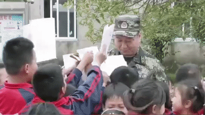 小朋友路遇特戰(zhàn)隊(duì)員訓(xùn)練揮手加油