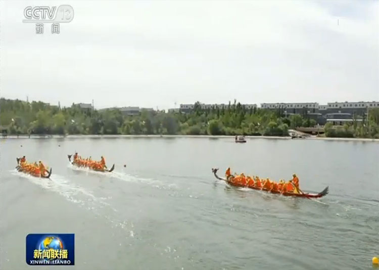 在陜西安康,一年一度的端午龍舟賽激情上演,18支龍舟隊在漢江之上一決高下。今年這里還把龍舟賽搬到了“云端”,讓大家得以在網(wǎng)上實時觀看,有效減少了現(xiàn)場觀眾的人數(shù);新疆喀什英吉沙縣的龍舟賽,今年已經(jīng)舉辦了第二屆,不少參賽隊是各個民族齊上陣,合力拼搏力爭上游;在安徽泗縣,十里八鄉(xiāng)的農(nóng)民組成了19支龍舟隊,在大運河上展開角逐。