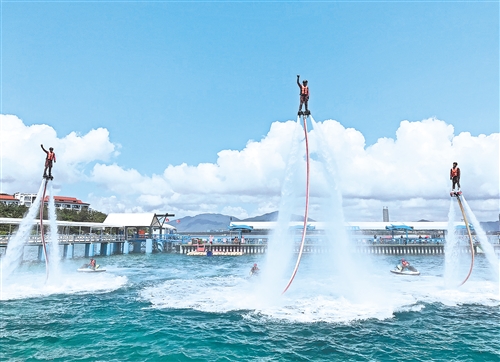 端午假期,三亞上演海上觀光表演項(xiàng)目。 經(jīng)濟(jì)日報-中國經(jīng)濟(jì)網(wǎng)記者 潘世鵬攝