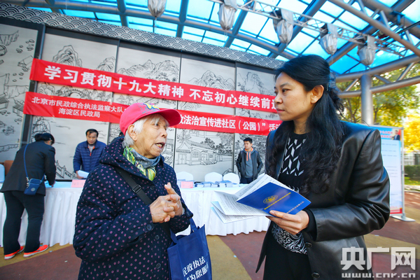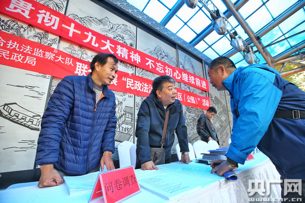 央廣網(wǎng)北京11月8日消息(記者孫濤 任曉宇)今日,北京市民政綜合執(zhí)法監(jiān)察大隊與海淀區(qū)民政局聯(lián)合開展了“民政法制宣傳進社區(qū)”活動,以擺放宣傳展板、發(fā)放宣傳材料和調查問卷以及接待群眾現(xiàn)場咨詢等方式,為社區(qū)居民第一時間傳達黨的十九大精神,普及民政法律知識。