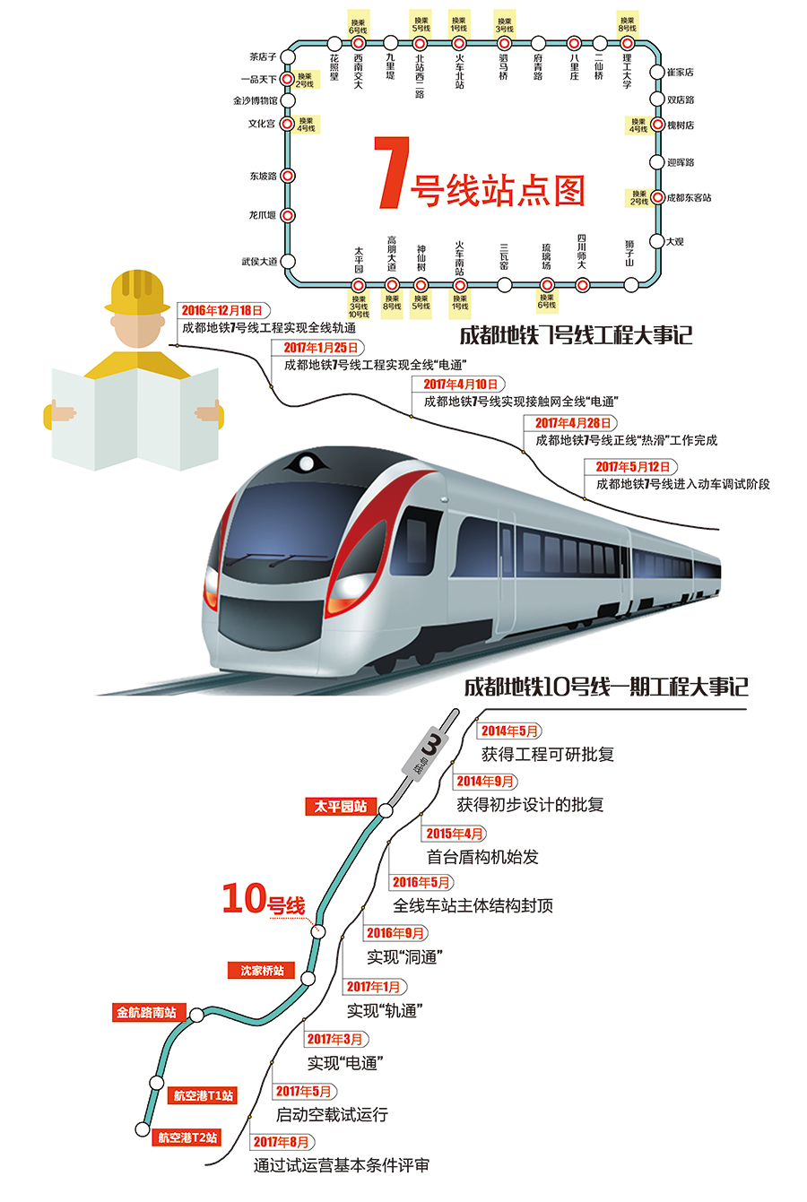 華西都市報-封面新聞記者了解到,成都將在今年下半年開通地鐵10號線一期工程和7號線。值得關(guān)注的是,10號線一期工程系雙流機場線,實現(xiàn)航空運輸和地鐵交通換乘“零距離”,屆時市民趕飛機,從城區(qū)出發(fā)最少15分鐘即可到達。