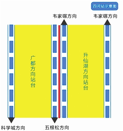 四河站身兼“中間站+端頭站+換乘站”。列車在這里將出現(xiàn)開往科學城方向和五根松方向兩種不同路徑