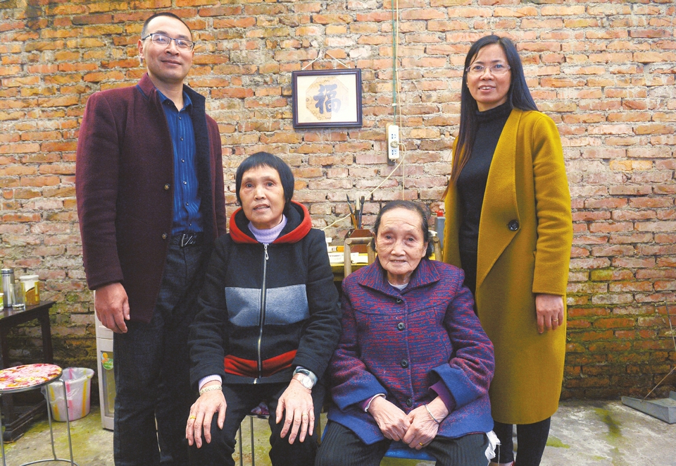 10月23日,邛崍?zhí)袜l(xiāng),吳松一家三代合影(從左至右:吳松,母親吳繼濤,奶奶黃治欽,妻子黃玉英)。