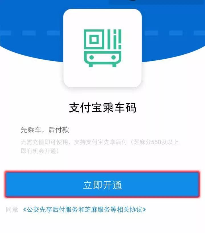 激活乘車碼功能:支付寶主界面選擇“更多”,進(jìn)入后選擇“城市服務(wù)”,進(jìn)入后選擇“交通”,進(jìn)入后選擇“乘車碼”,然后激活功能即可。注意,首次激活過(guò)程略微繁瑣,激活后無(wú)需再次激活。