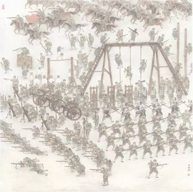 2014年9月,油畫《突擊》入選第十二屆全國美術(shù)大展。(浙江美術(shù)館)