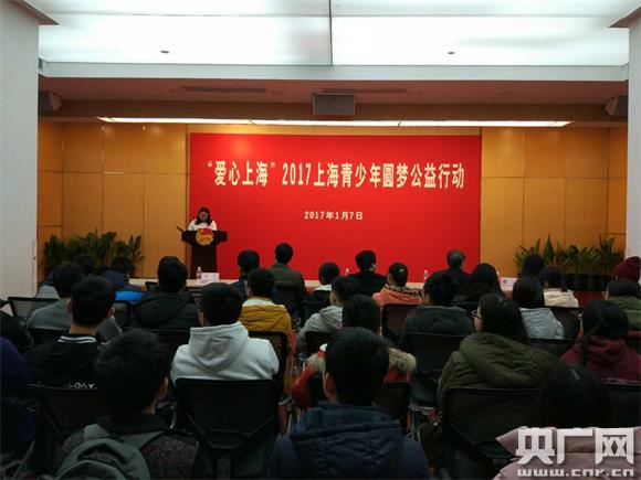 央廣網(wǎng)上海1月7日消息(記者傅聞捷 韓曉余)今天(7日),“愛心上!2017上海青少年圓夢公益行動(dòng)在團(tuán)市委機(jī)關(guān)一號會(huì)議室舉行啟動(dòng)儀式。40余家青年社會(huì)組織、志愿者團(tuán)隊(duì)代表,80名受資助青少年代表參加儀式。