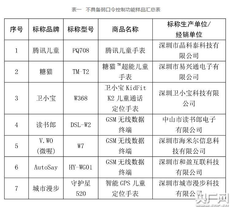 本次試驗(yàn)對(duì)20塊智能手表的信息安全進(jìn)行了測(cè)試,結(jié)果顯示,7塊兒童智能手表不具備弱口令控制的功能,即允許用戶使用諸如123456的簡(jiǎn)單密碼等(詳見(jiàn)表一)。