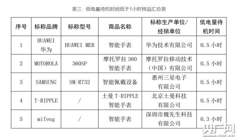 測(cè)試結(jié)果顯示,20塊樣品的滿電全運(yùn)行時(shí)間均不超過(guò)10小時(shí),最長(zhǎng)的為9.2小時(shí),最短的為1.1小時(shí)。其中僅2塊樣品達(dá)到8小時(shí)以上,5塊樣品低于3小時(shí)且都為兒童智能手表(詳見(jiàn)表二)。
