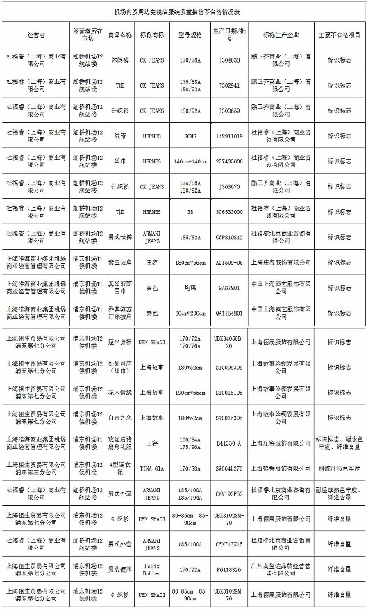 機(jī)場(chǎng)內(nèi)及周邊免稅店銷售服裝的主要不合格項(xiàng)目是色牢度、纖維含量和標(biāo)識(shí)標(biāo)志。50個(gè)批次服裝經(jīng)檢測(cè),有22個(gè)批次不合格。