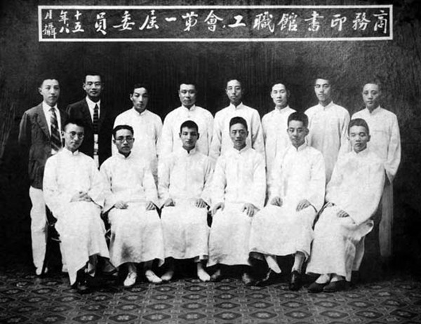 商務印書館發(fā)行所職工會第一屆執(zhí)行委員會委員合影。前排左三為陳云