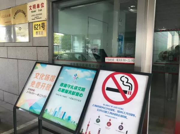 嘉定眾多公共場合內擺放了新禁煙標識