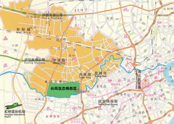 圖片說明:長風(fēng)生態(tài)商務(wù)區(qū)所在區(qū)域示意圖。