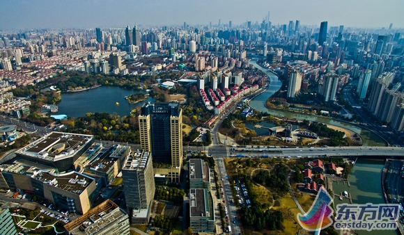 圖片說明:航拍的上海長風(fēng)生態(tài)商務(wù)區(qū)。(鈕一新攝影)