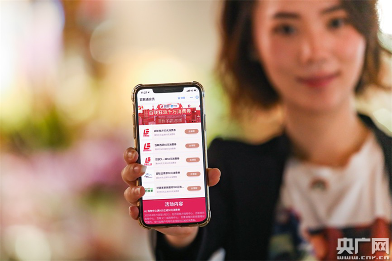 上海消費(fèi)者通過支付寶領(lǐng)取“百聯(lián)消費(fèi)券”(央廣網(wǎng)發(fā) 阿里巴巴供圖)