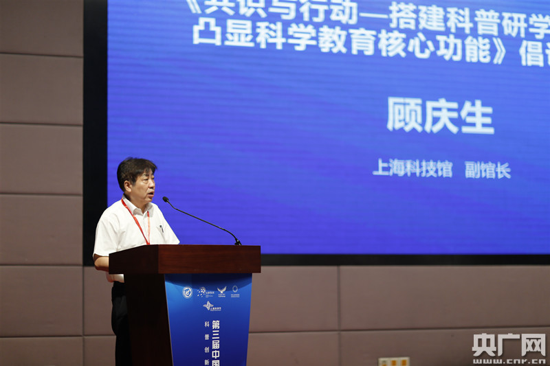在開幕式上,上?萍拣^副館長顧慶生發(fā)布《共識與行動——搭建科普研學(xué)合作平臺,凸顯科學(xué)教育核心功能》倡議書。并作主旨報(bào)告《從場館資源到研學(xué)課程:探索與實(shí)踐》。