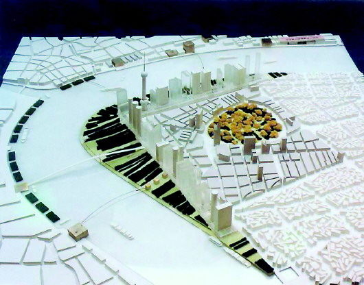 意大利?怂_斯的方案類似一個(gè)橢圓形的古城堡,中間的一條河流將空間分隔成兩大區(qū)域,蘊(yùn)含陰陽(yáng)八卦的理念;法國(guó)貝羅設(shè)計(jì)事務(wù)所的方案,要求在陸家嘴中心區(qū)放置400萬(wàn)平方米的建筑量,全部安排在沿江,形成直角,恰似一本翻開(kāi)的書;英國(guó)羅杰斯設(shè)計(jì)事務(wù)所的方案,外形是個(gè)圓,就像一個(gè)古羅馬的角斗場(chǎng),圓的中間是大面積的綠地和水池;日本的伊東豐雄設(shè)計(jì)事務(wù)所的方案,外形恰似一個(gè)集成電路板,呈條形碼的形狀,每一條都是一個(gè)獨(dú)特的功能帶。
