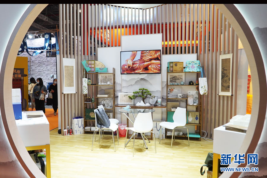 參展商展示和敦煌博物館聯(lián)名合作的國潮文創(chuàng)展品。新華網(wǎng)馮麗 攝