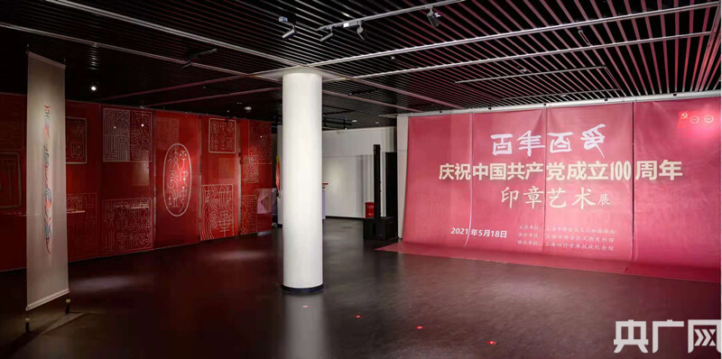 展覽位于上海四行倉庫抗戰(zhàn)紀念館3樓臨展廳,F(xiàn)場共分為三個部分,分別是:紅色歷程,由百枚印章和邊拓組成的百幅懸掛圖片,宛如絢麗的紅色海洋,表現(xiàn)了中國共產(chǎn)黨“百年征程波瀾壯闊”;紅色印記,由手工精裱長卷、雅體刺繡“中國共產(chǎn)黨萬歲”和“不忘初心”、雅體瓷畫“江山萬年青”等組成,表達了藝術家們“百年初心歷久彌堅”的創(chuàng)作理念;紅色基因,展出百方印章以及由印章引申而出的紅色文創(chuàng),如印譜、打卡明信片、帆布包等,讓國潮把紅色文化帶給更多的人。