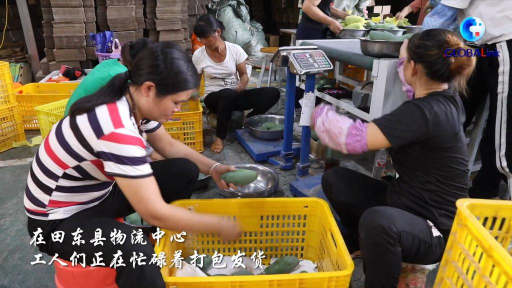 田東縣目前有3000多個(gè)電子店鋪銷售芒果,網(wǎng)絡(luò)覆蓋全國(guó)。在田東縣物流中心,工人們正在忙碌著打包發(fā)貨。農(nóng)村電商的蓬勃發(fā)展不僅為像黃尚善一樣的返鄉(xiāng)青年提供創(chuàng)業(yè)機(jī)遇,也提供了更多的就業(yè)機(jī)會(huì)。