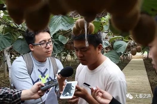 李凱在獼猴桃園與農(nóng)業(yè)專家通話咨詢獼猴桃種植問(wèn)題