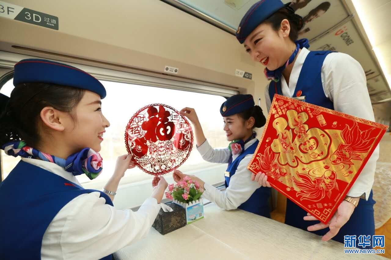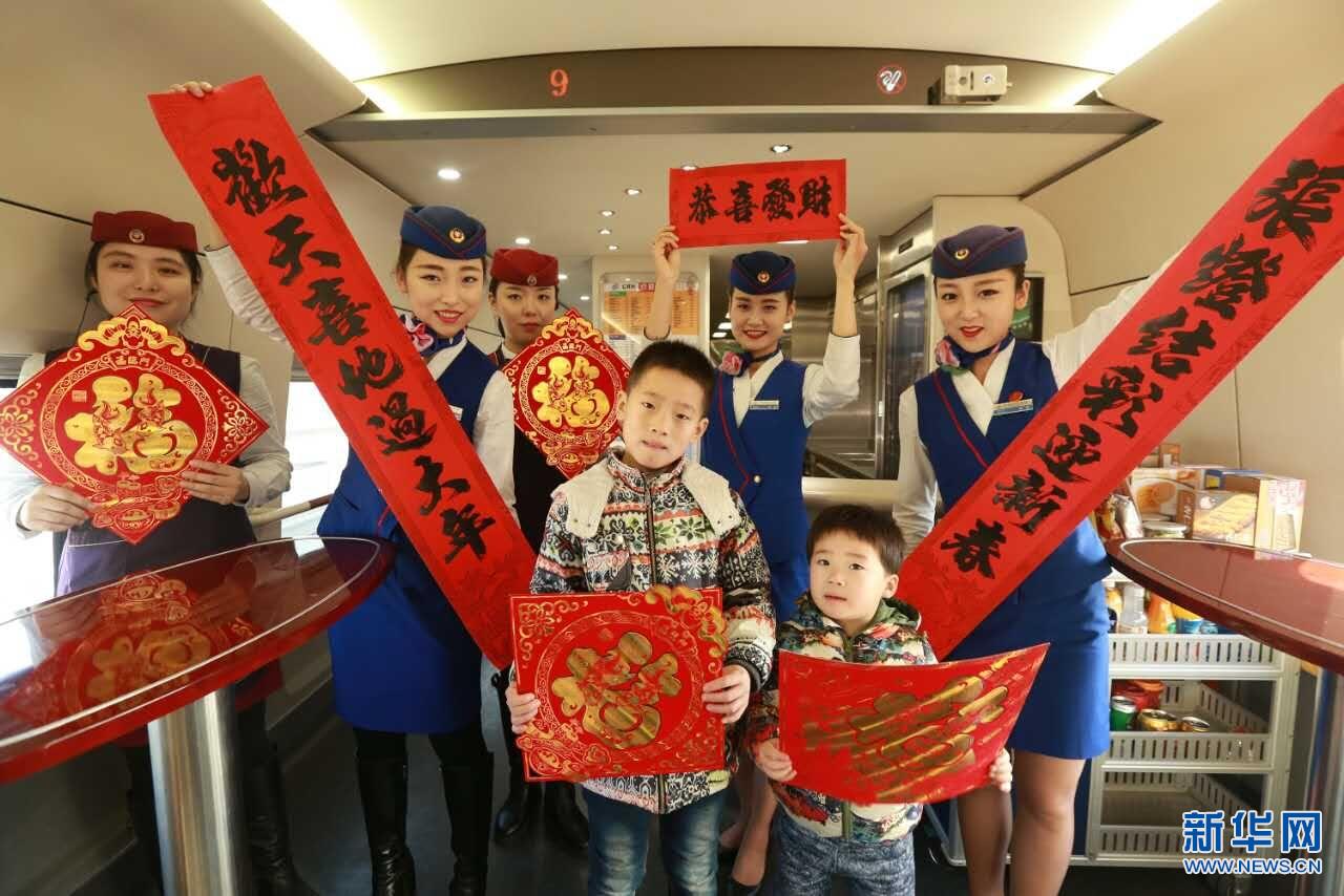 1月12日,春運前一天,西安客運段的乘務(wù)員們?yōu)榱私o車廂營造出暖暖的年味兒,購買了窗花、對聯(lián)、福字等節(jié)日喜慶物品裝飾車廂,讓春運期間回家過年的旅客一邁進車廂便能感受到濃郁的年味氣息。同時,他們還組織開展了“迎新春、送福字”活動,讓旅客帶;丶遥c家人共度新春佳節(jié)。(通訊員 王曙天) -