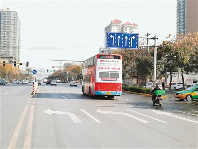 “這個(gè)十字路口本來(lái)只有一條左轉(zhuǎn)車(chē)道,今年夏天交警部門(mén)對(duì)這里的標(biāo)志標(biāo)線優(yōu)化過(guò)一次,改成了兩條左轉(zhuǎn)道,但是空中標(biāo)牌一直沒(méi)改,容易對(duì)司機(jī)造成誤導(dǎo)。”在附近上班的陳先生說(shuō)。