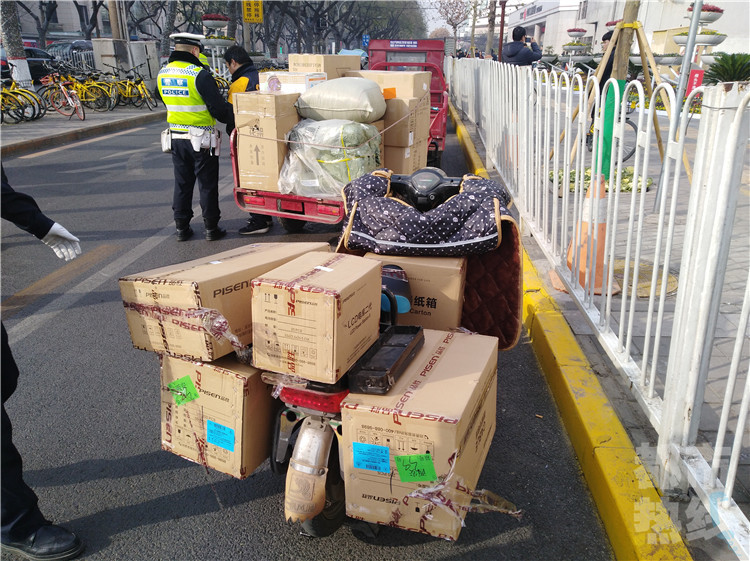 在現(xiàn)場,多輛兩三輪電動車都是因為違法拉貨,不按規(guī)定上路行駛,被交警查扣了。同時,交警對兩三輪電動車的整治會持續(xù)進行,違法必被查。
