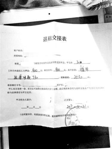 再次,這份《退租交接單》非常不規(guī)范,只能證明雙方曾經簽過協(xié)議,但協(xié)議內容沒有,違約條款不詳,會給維權帶來不便。建議租戶保留原始證據(jù),以備后用。