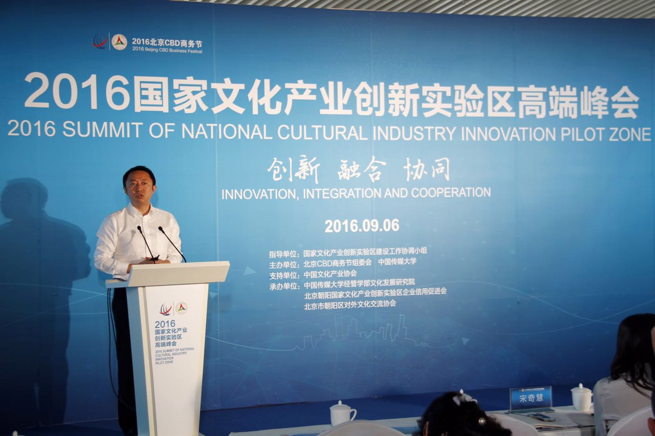 2016國家文化產(chǎn)業(yè)創(chuàng)新實(shí)驗(yàn)區(qū)高端峰會(huì)”日前在北京市朝陽區(qū)成功舉辦。本屆高端峰會(huì)以“創(chuàng)新?融合?協(xié)同”為主題,邀請文化部黨組成員、部長助理于群,北京市委常委、宣傳部長李偉,北京市朝陽區(qū)委書記吳桂英,中國傳媒大學(xué)黨委書記陳文申等社會(huì)各界人士,圍繞文化產(chǎn)業(yè)發(fā)展模式和創(chuàng)新舉措開展了深入探討和交流。