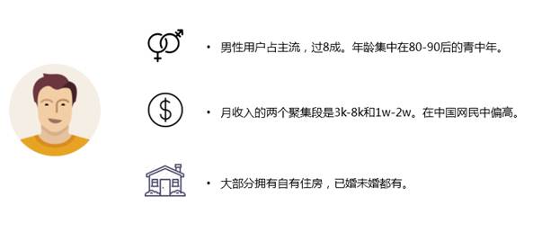 主力購(gòu)買人群為18-30歲的青中年男性,收入兩個(gè)聚集段是3k-8k和1w-2w。