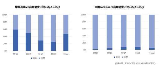 數(shù)據(jù)近8成個(gè)人用戶以購(gòu)買Mobile VR為主,價(jià)格區(qū)間在200元左右,大部分為近半年所購(gòu)。中高端VR設(shè)備大多數(shù)應(yīng)用于商用市場(chǎng),主要以線下體驗(yàn)店為主[x]。