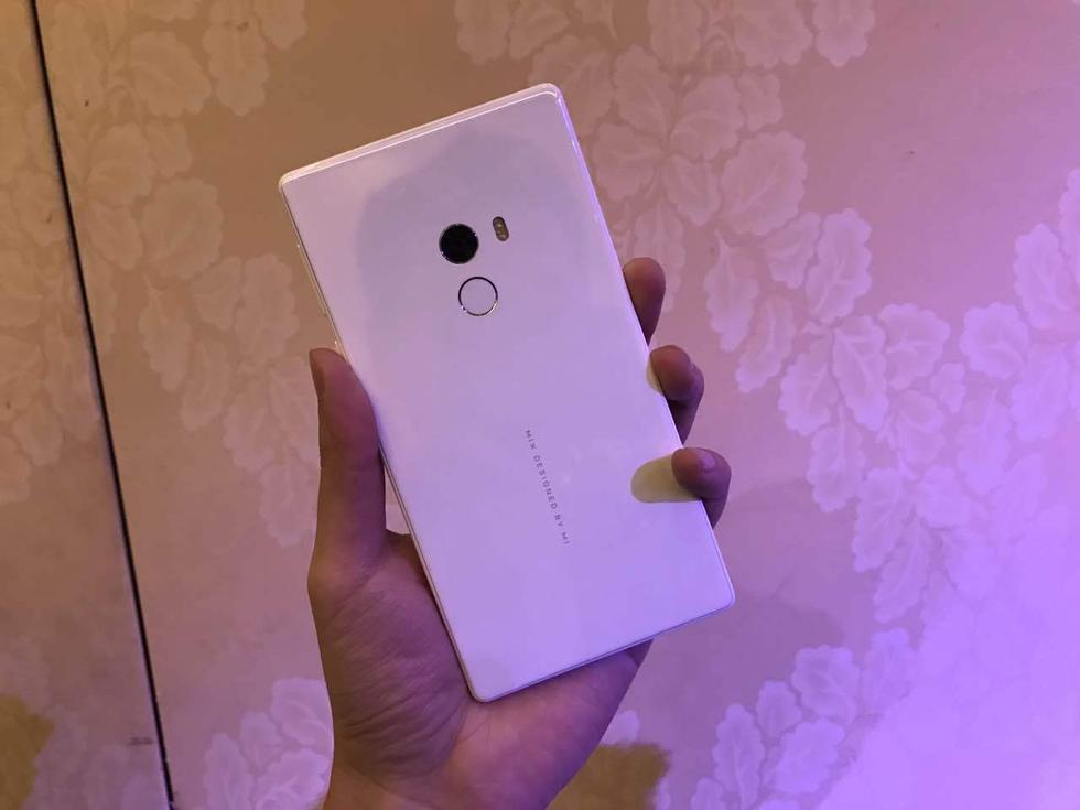 白色版MIX同樣采用了陶瓷作為機(jī)身材質(zhì),背面指紋識(shí)別模塊的外圈和低配版黑色MIX一樣采用銀色外圈裝飾。 -