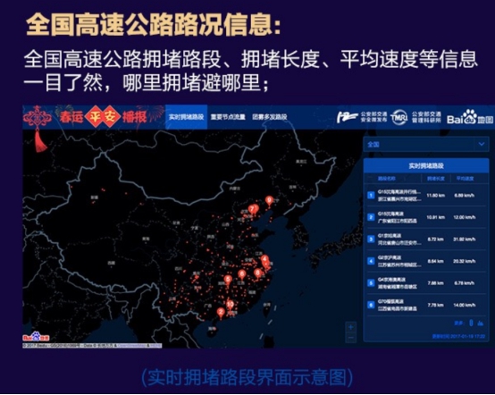 圍繞春運(yùn)出行高峰,百度地圖除了上線春運(yùn)系列直播間,還在公安部交管局指導(dǎo)下,與公安部交通管理科學(xué)研究所合作開展了2017年春運(yùn)“平安播報(bào)”活動(dòng),可為全國(guó)用戶提供高速公路路況信息、重要節(jié)點(diǎn)流量信息、團(tuán)霧多發(fā)路段信息,以及通過百度地圖APP還可以收到沿途惡劣天氣導(dǎo)致的交通管制信息等語音提示,借助大數(shù)據(jù)讓用戶平安返鄉(xiāng)。