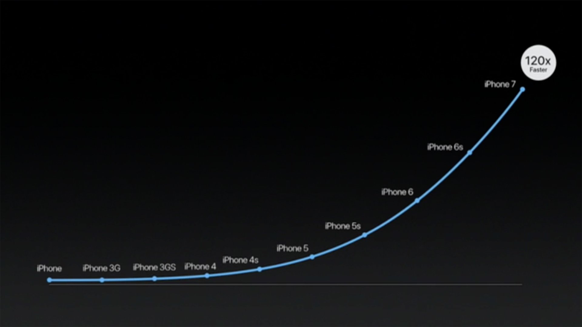 下圖為蘋果在2016年推出iPhone 7時(shí)的性能測試圖: