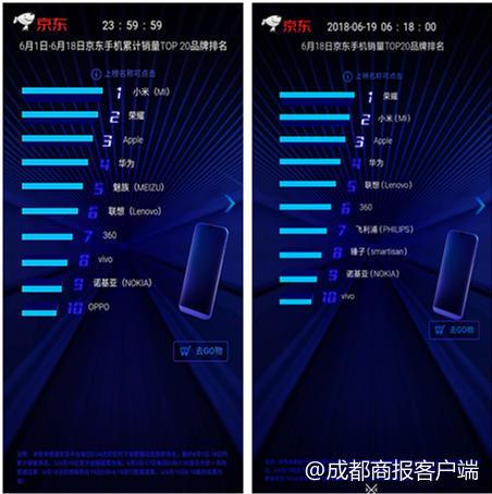 2、關(guān)于榮耀和小米在6月1日-18日累計(jì)銷量排名出現(xiàn)的變化,是因?yàn)?月18日0:00開始,根據(jù)競速榜規(guī)則,系統(tǒng)對下單后6小時未結(jié)算的訂單進(jìn)行了刪除,導(dǎo)致6月19日,榮耀和小米 的在6月1日-18日累計(jì)銷量排名發(fā)生變化。
