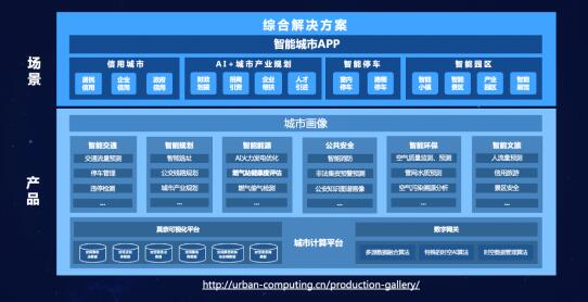 第三層是場景化解決方案層,包括信用城市解決方案、AI+城市產(chǎn)業(yè)規(guī)劃解決方案、智能停車場解決方案、智能園區(qū)解決方案和智能城市APP五大場景化解決方案。解決方案可以調(diào)用不同種類的產(chǎn)品,比如在智能園區(qū)解決方案中,會(huì)綜合使用智能交通中的停車管理產(chǎn)品、智能規(guī)劃中的智能選址產(chǎn)品、智能能源中的燃?xì)庹窘】刀仍u(píng)估產(chǎn)品,針對(duì)智能園區(qū)的特定場景,組成一整套解決方案。