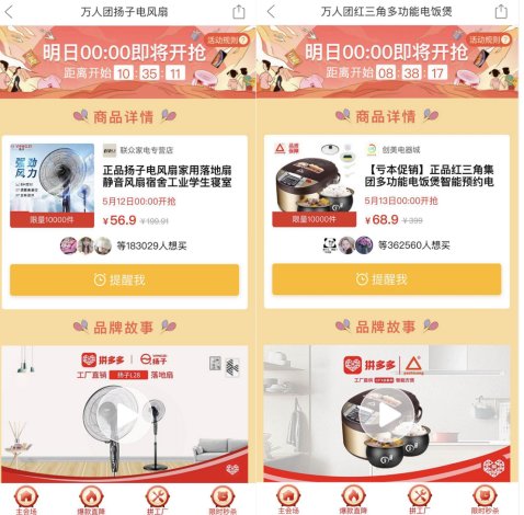 對(duì)此,有業(yè)內(nèi)人士指出:“在新增用戶大量涌入之際,(拼多多)推出‘萬(wàn)人團(tuán)’活動(dòng),意在進(jìn)一步提升用戶的留存和復(fù)購(gòu)率。從行業(yè)角度看來(lái),5月是電器類等產(chǎn)品的銷售旺季,活動(dòng)也契合了市場(chǎng)需求。”