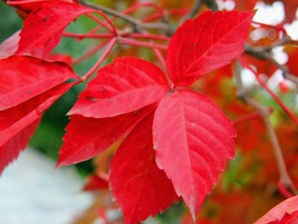 五葉地錦,又名美國(guó)地錦,葡萄科爬山虎屬。落葉大藤本,具分枝卷須,卷須頂端有吸盤。十月上旬葉色逐漸變紅,多用于園林墻壁及公路兩旁山巖裸露處綠化,也是優(yōu)良的觀紅葉樹(shù)種。