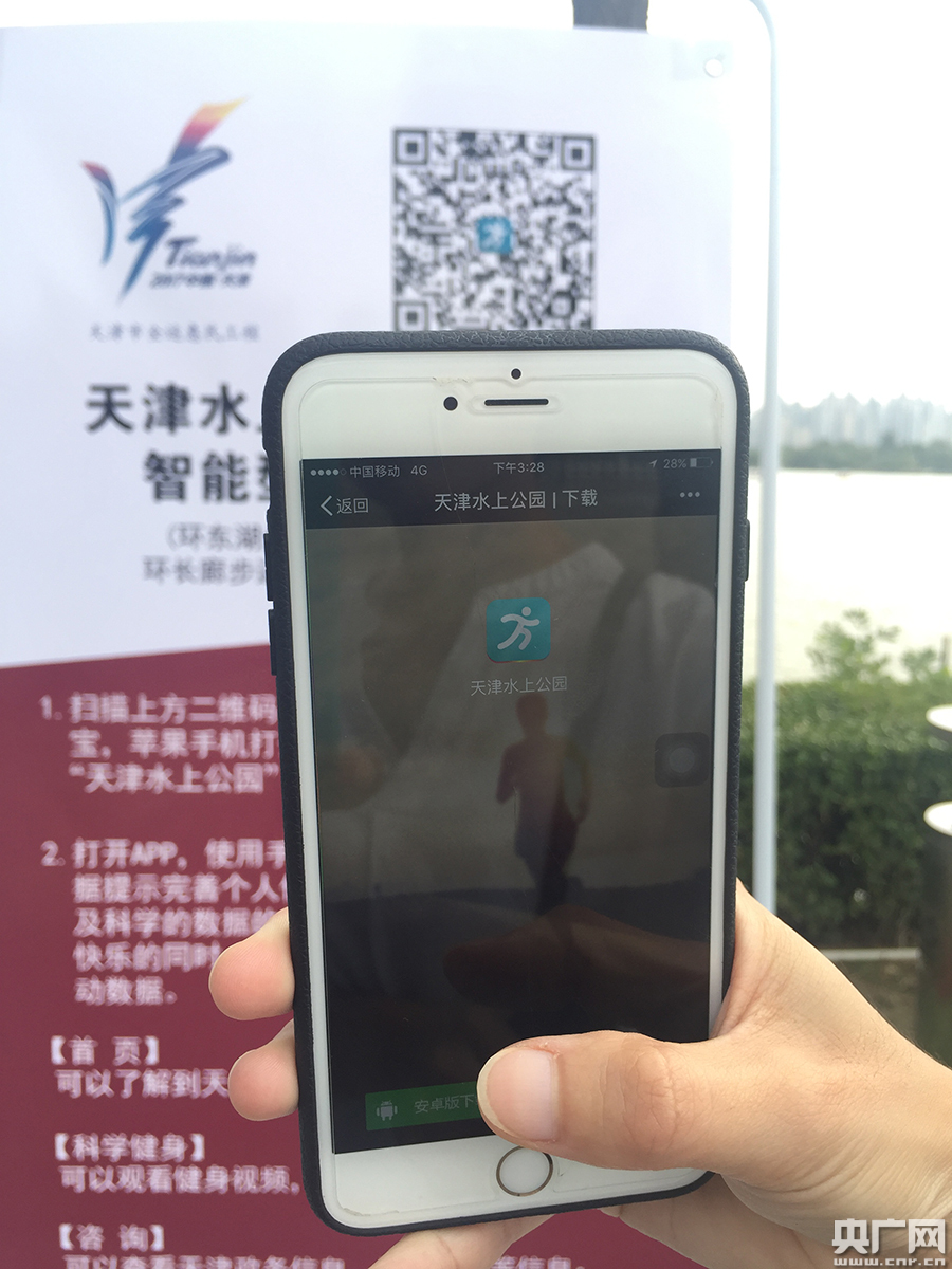 手機(jī)掃碼下載“天津水上公園”APP體驗(yàn)智能音樂(lè)步道