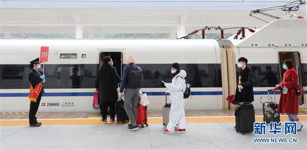 當日,湖北省十堰市193名進京務工人員乘坐G4834次復工專列從十堰東高鐵站出發(fā)。他們和從湖北省襄陽市登上本次專列的一批復工人員抵達北京西站后,用人單位將用專車接回并隔離觀察14天后方可上崗務工。